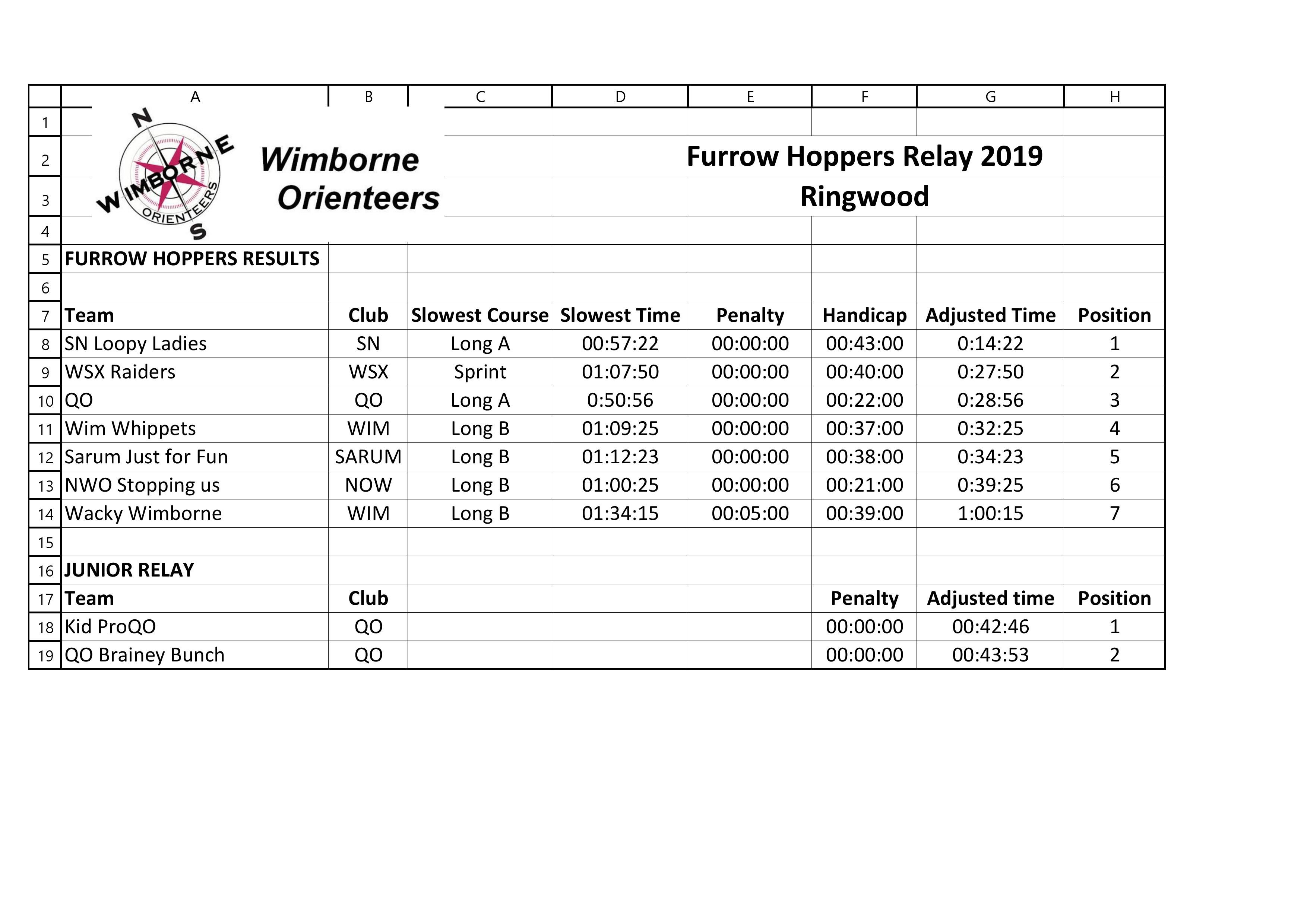 We had the 6th Relay in the summer series on Sunday, in Ringwood /. The third time this area has been used since its first outing for the Wessex Night League 2018. 7 teams and 2 junior teams raced in the heat to produce some tight times. A group came from S.N and had a fast overall time with Mel Slade in the team and ex GB squad Sarah Rollins, so they won the trophy on the day. Second up came us just a minute faster overall than the Quantock team. Full course results here .That means that this Sundays Holton Lee event is the decider! Either us or Quantock will come away with the series final so full concentration needed please and no -miss punches too. Being as this is one of our maps it should stand us in good stead for it. I will be away unfortunately so will miss it, and also the launch of another Permanent course at Lodmoor, so do go along and support, or take part in Weymouth- Its another great park area right next to one of the most important nature reserves in the U.K, people travel from all over G.B to visit so get yourselves down there Weymouth is just around the corner. (btw the sandbanks ferry is OUT of service until at least 12th August)