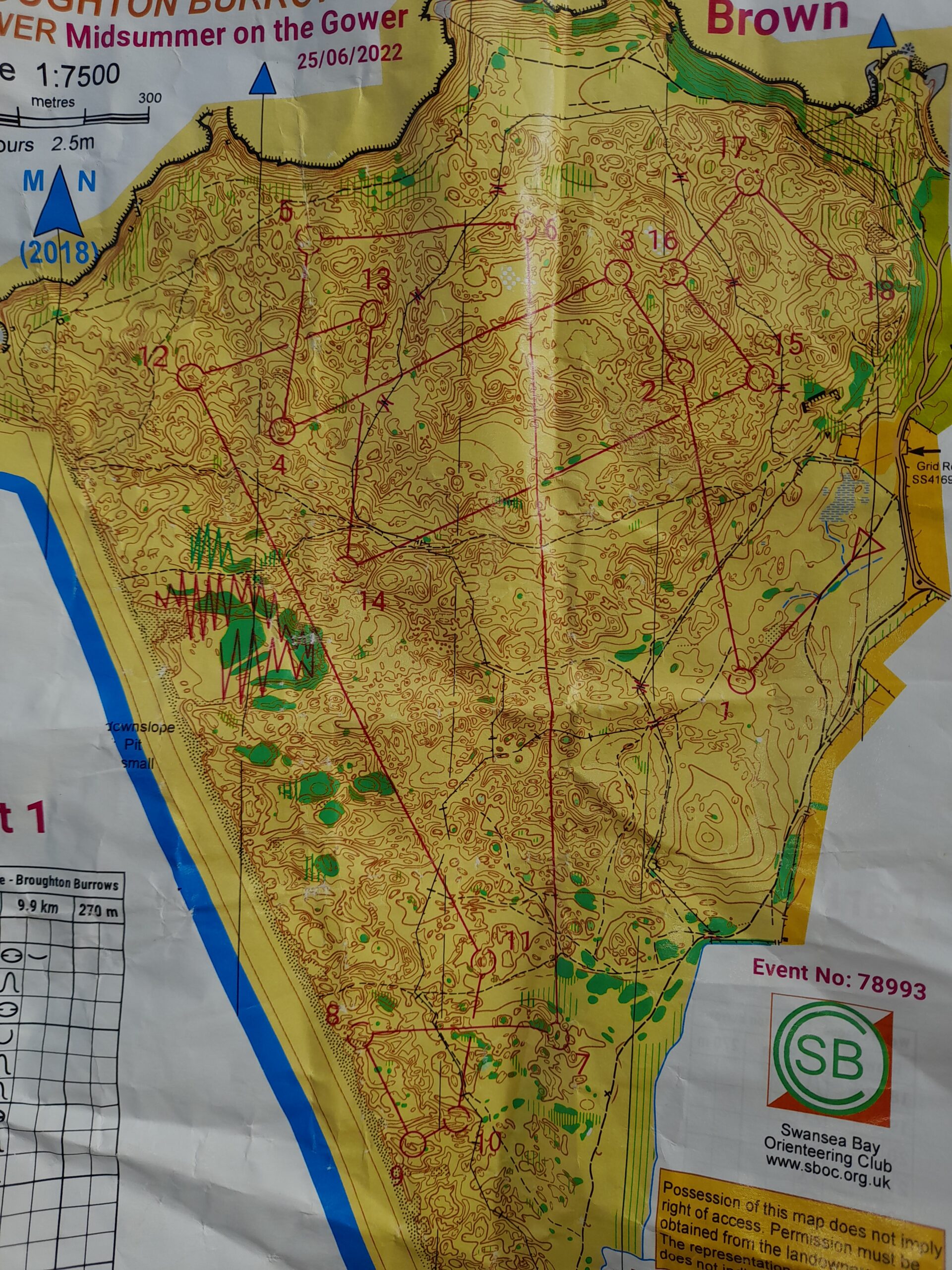The Saturday was a long distance event on Broughton Burrows. This is a hugely complex moonscape of wind-sculptured craters, with everything on the map mapped negatively. It aches the brain, and the sand tires the limbs. We all had long days, but this really is the premier area in my view in South Wales and well worth the trip.