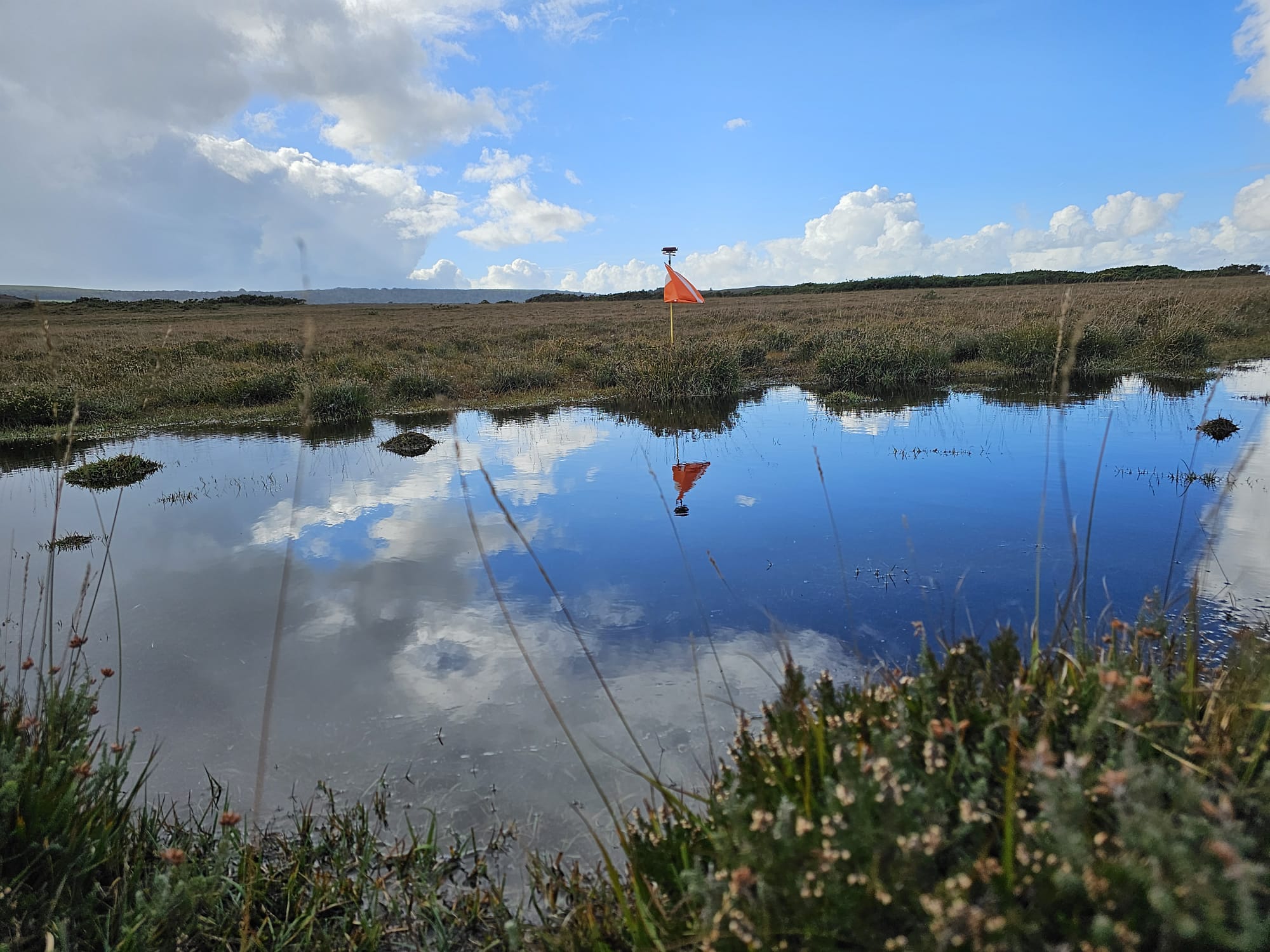 The overcast weather of Saturday gave way to sunshine on Agglestone. Roger had prepared some physically challenging courses, where careful navigation was required amongst the marshes and old clay pits of Godlingston Heath. The views from Agglestone (if you stop and look long enough) are some of the finest from any orienteering area in England. The blue waters of Studland Bay and Poole Harbour, the forested islands of Brownsea and the distant views of Bournemouth and the Needles are far reaching and spectacular.